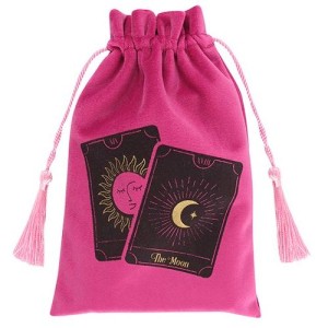 Piękny, aksamitny woreczek na karty tarota w głębokim odcieniu różu z eleganckim złotym haftem przedstawiającym karty Tarota "Słońce" i "Księżyc". Woreczek zapewnia nie tylko estetyczne przechowywanie kart tarota, ale także chroni je przed uszkodzeniami i negatywną energią. Wykonany z wysokiej jakości materiału, posiada ściągacz z ozdobnymi chwostami, który ułatwia zamykanie i otwieranie. Idealny dla pasjonatów ezoteryki, magii i wróżb, którzy cenią praktyczne i piękne akcesoria.