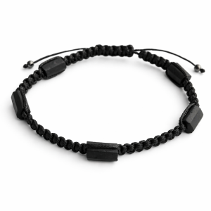 Ta minimalistyczna bransoletka została ręcznie wykonana w Polsce z czarnych, surowych turmalinów i plecionej, regulowanej nici. To produkt handmade, więc każdy egzemplarz może się nieznacznie różnić – co czyni go wyjątkowym i pełnym naturalnej energii.