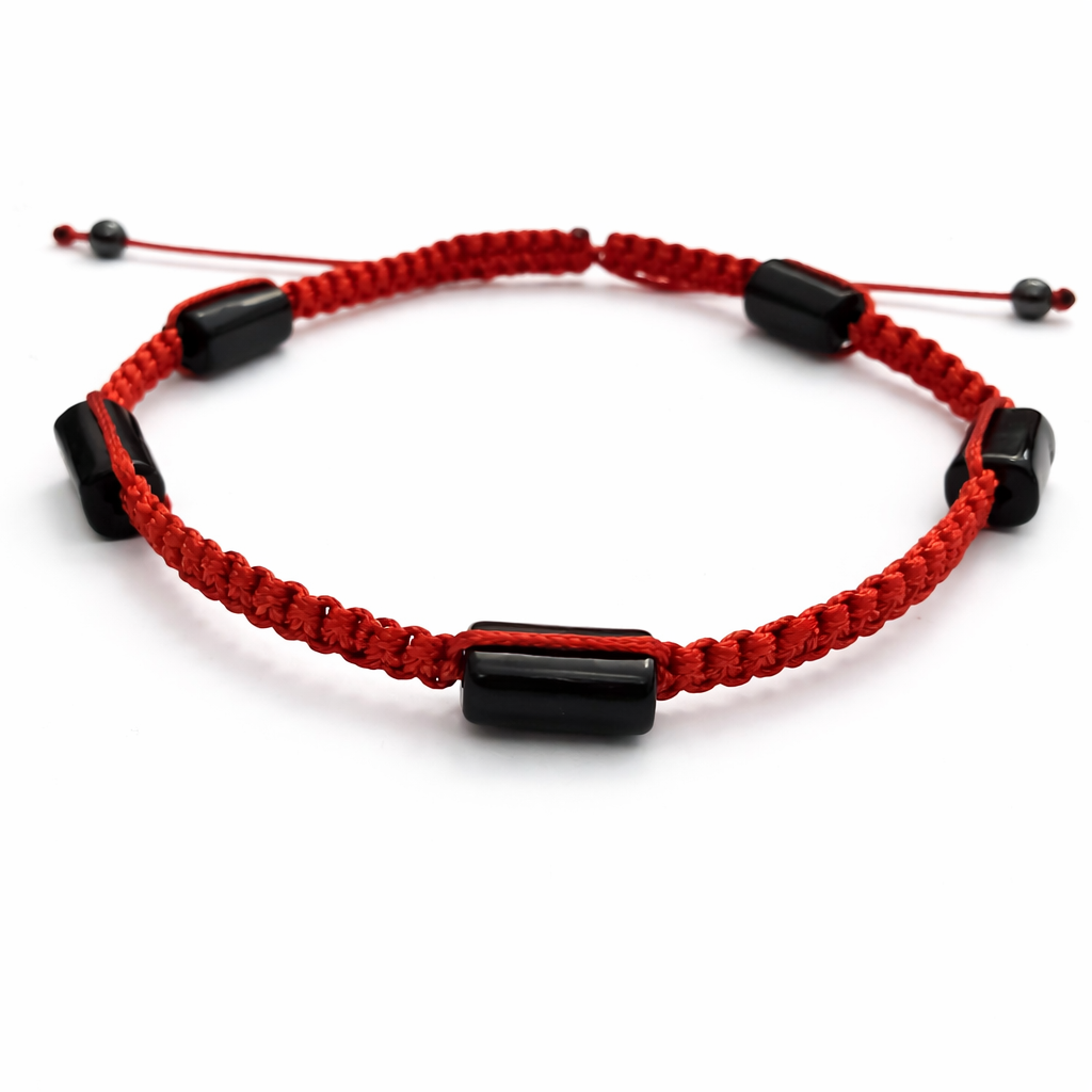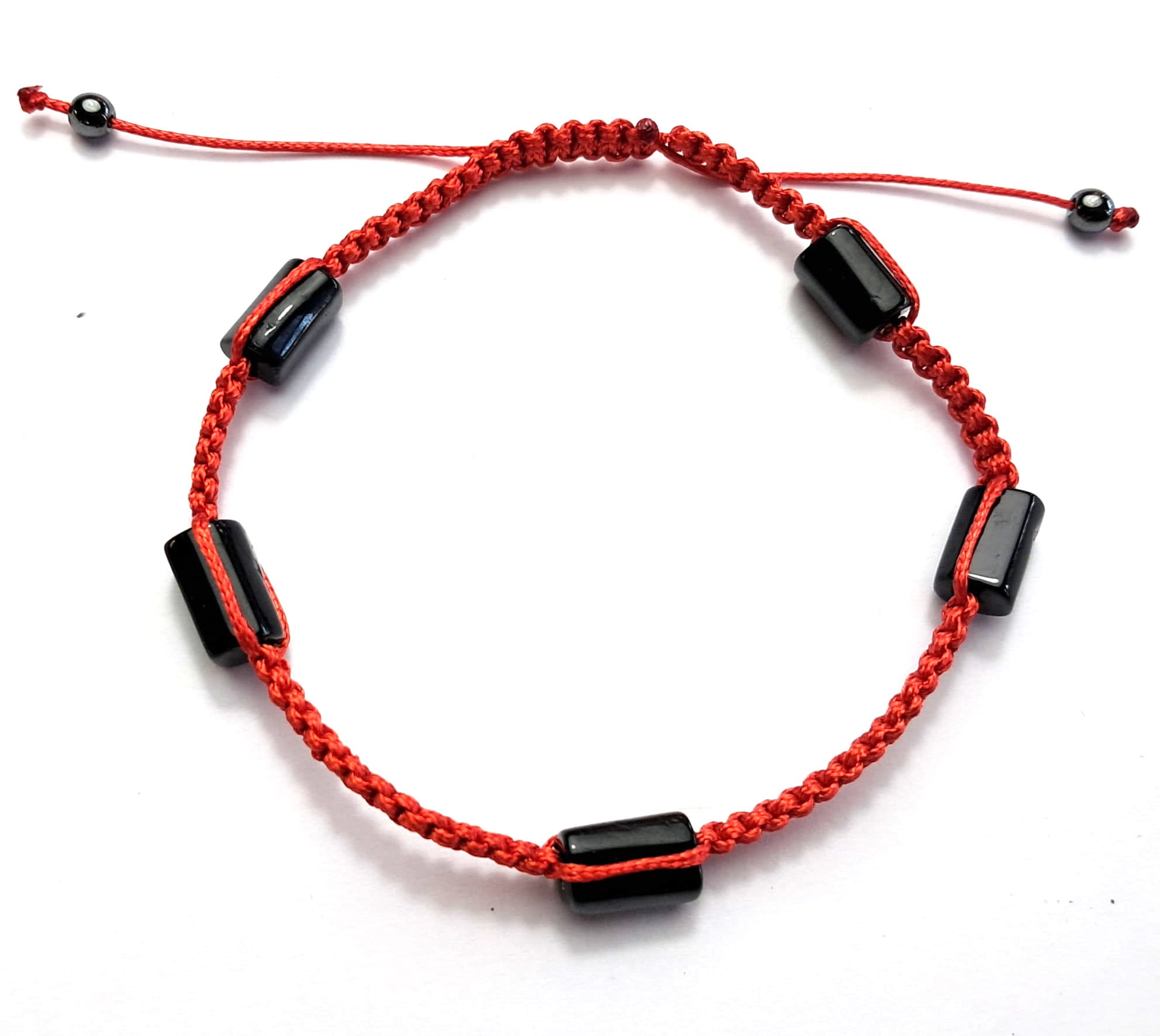 Bransoletka ochronna z polerowanymi czarnymi turmalinami na czerwonym sznurku – równowaga i tarcza energetyczna