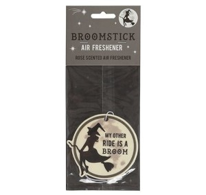 Zabawny i stylowy odświeżacz „My Other Ride is a Broom” o zapachu róży. Idealny dla współczesnych czarownic.
