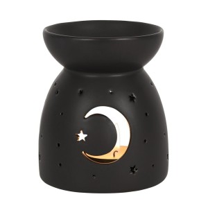 Wprowadź do swojego wnętrza magiczny nastrój dzięki temu czarnemu kominkowi ceramicznemu z motywem półksiężyca i gwiazd. Idealny do olejków zapachowych i wosków – doda uroku każdemu pomieszczeniu, szczególnie w sezonie jesienno-halloweenowym.