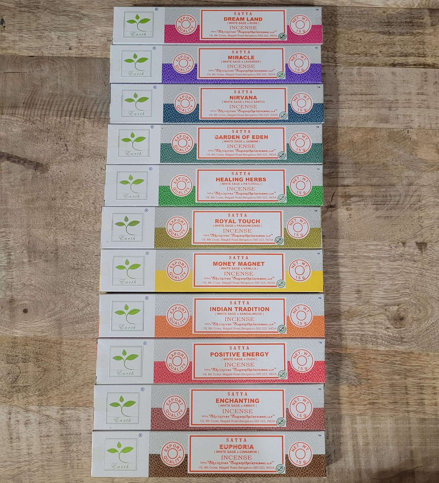 Kolekcja kadzidełek Satya charakteryzuje sie bardzo przyjemną harmonią zapachu która zostaje w pomieszczeniu na długi czas po wypaleniu kadzidełka.