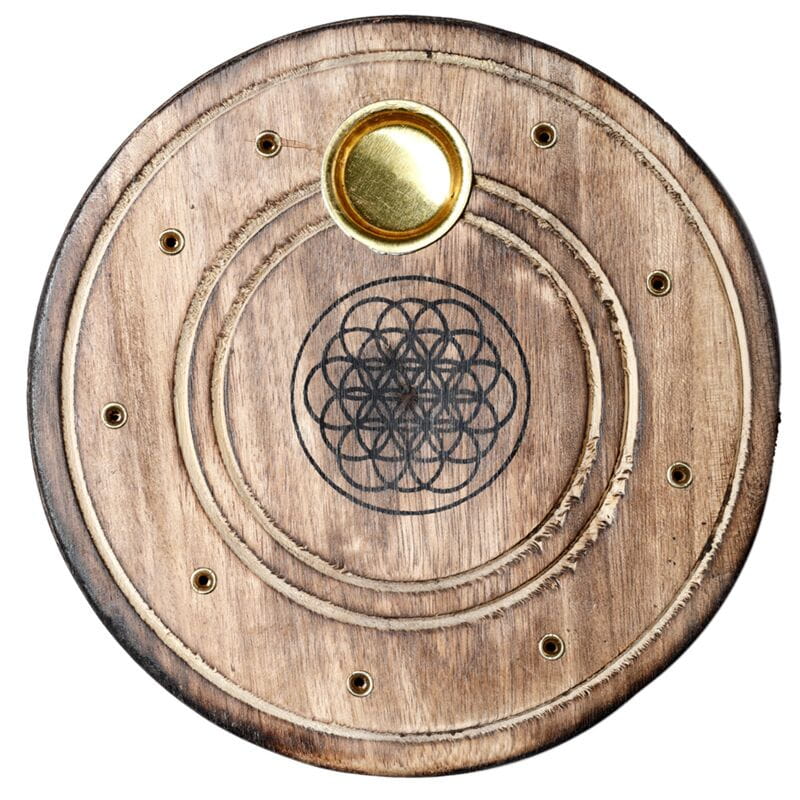 Popielnica na kadzidła z drewna z drzewa mango Okrągła - motyw roślinny