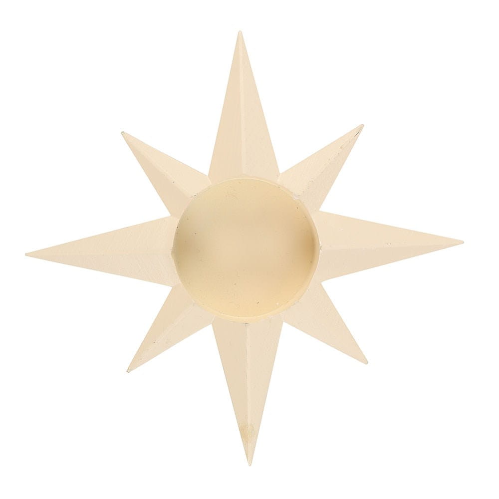 Stylowy świecznik na tealight w kształcie białej gwiazdy. Idealny do świątecznych aranżacji i codziennego wystroju w stylu celestial. Wykonany z żywicy.